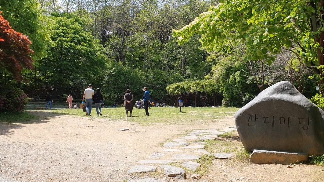 길을 따라 윗쪽으로 쭉 올라가다보면 잔디마당이 보인다.